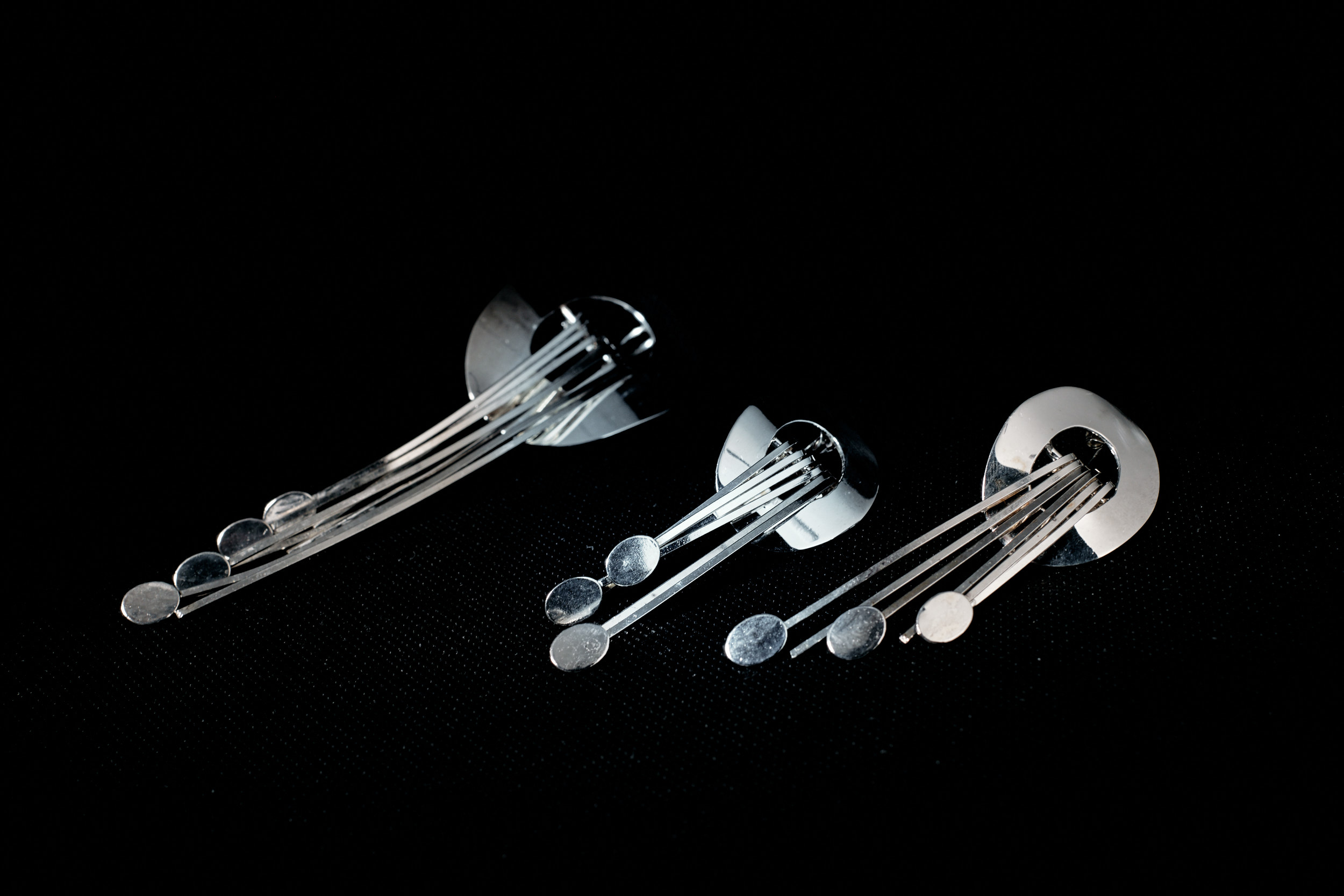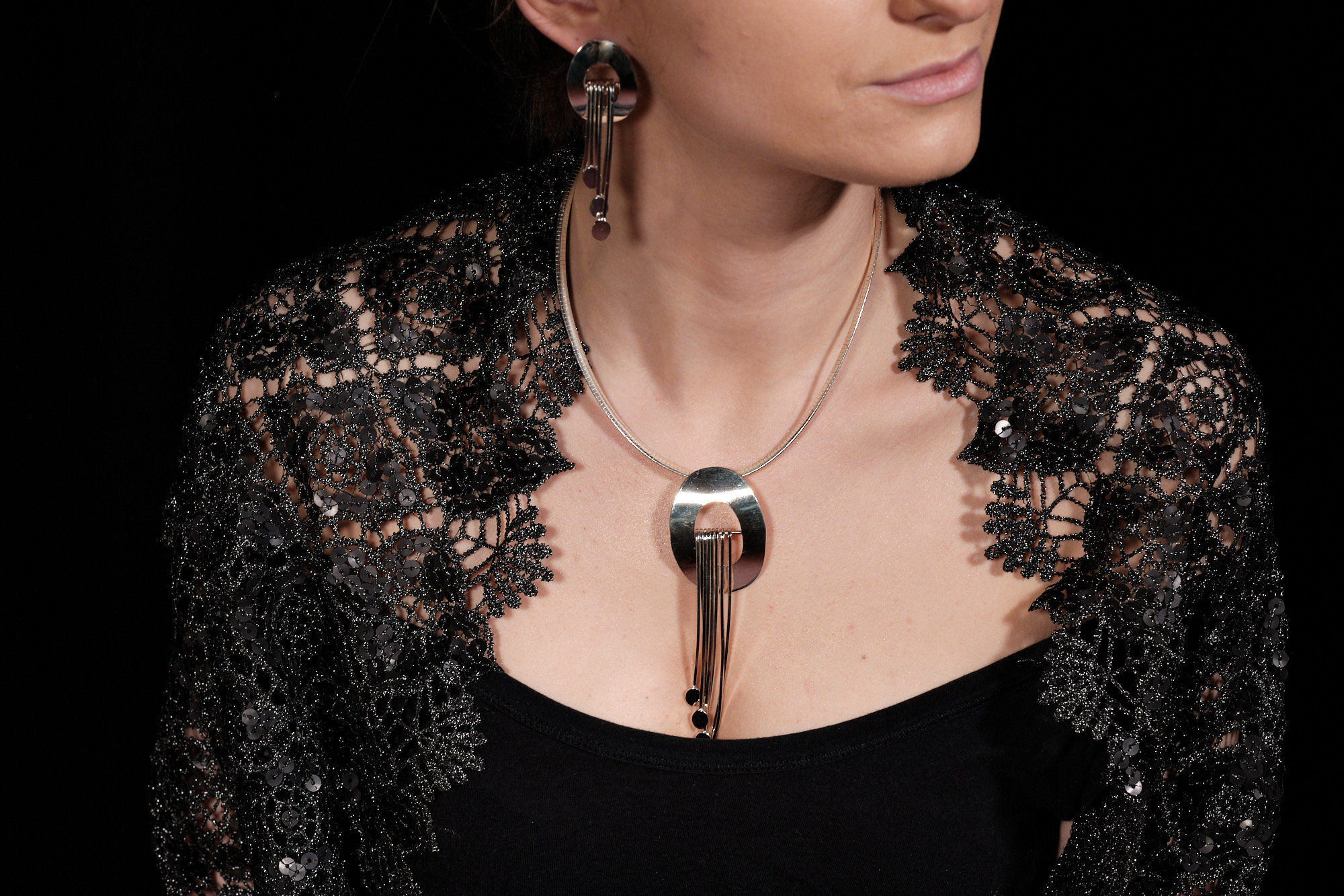 Unique Sterling Silver Oval Fireworks Pendant and Earrings
